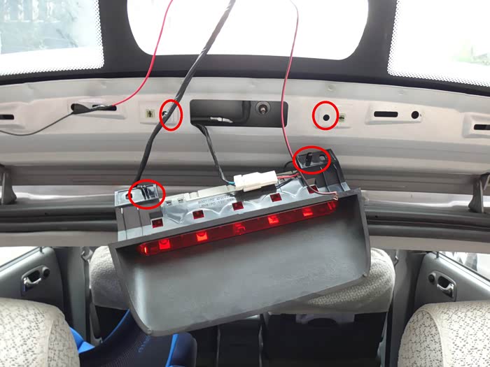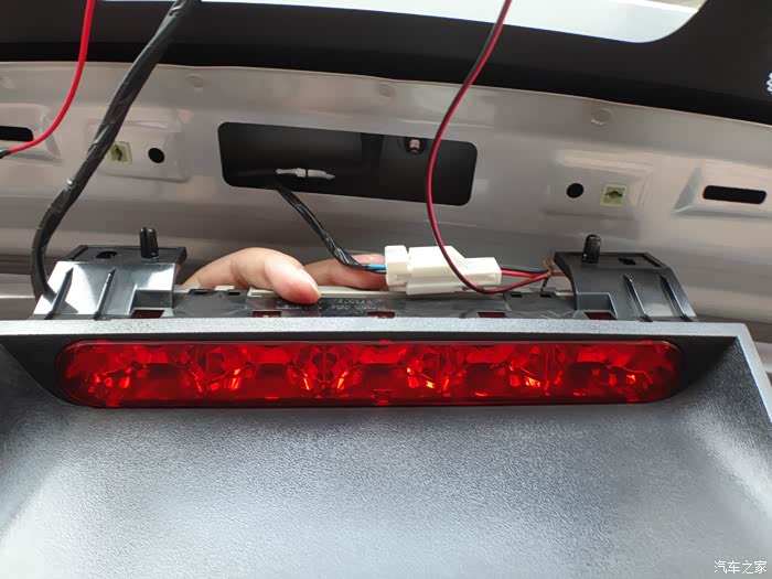 顺理成章的用螺丝刀拆下螺丝,捏着高位刹车灯轻轻往下拉,整个模块就被拆卸下来了。