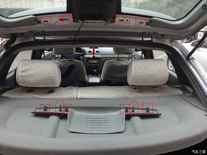 第一步,打开尾箱盖,拆下高位刹车灯上的盖板。