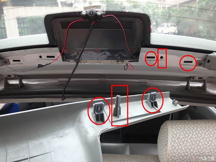 真的找到了一篇,不过,讲的是三厢凯越的高位刹车灯泡更换过程。貌似挺复杂,放倒后排座椅,拆尾部的若干部件,还得动用包括撬板、螺丝刀、扳手等等好几种工具……很显然,这并不适用于我的HRV——当初在找汽修师傅安装行车记录仪时,我就看到过他处理后摄像头的方法,似乎他只是花了一小会儿就把后摄像头装在了高位刹车灯的位置——所以,我决定抛开三厢凯越车友提供的攻略,凭着当初的记忆,自己摸索着上!