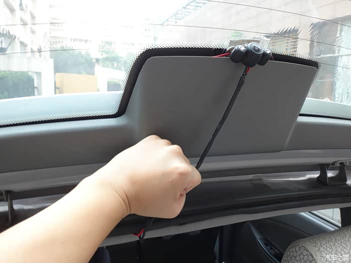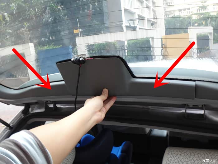 因为有当初观察汽修师傅安装行车记录仪后摄像头的经验,我记得这一步是完全不用借助任何工具的。只需要两手各抠住高位刹车灯盖板的一端,手指找到盖板与车辆接触的缝隙,用力向外拉即可。