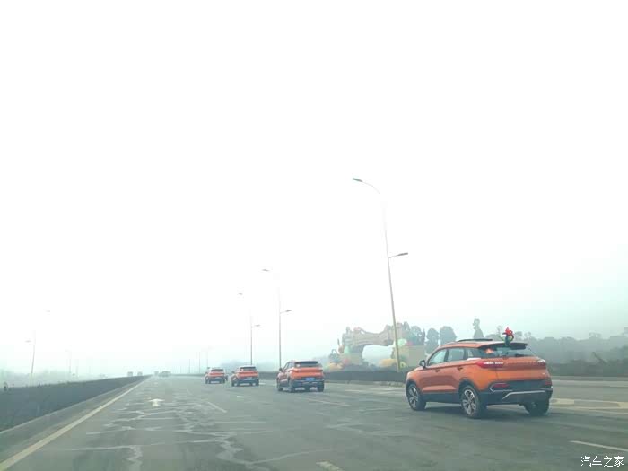 一切工作准备就绪。1月28日活动正式开始了,早上大家都在规定时间到了集合地点,潘哥还给大家准备了牛奶面包,很细心,总共十台九妹,不错很满意了,四辆果粒橙,我是三号车果粒橙,九点半出发了向班竹林开去,潘哥带头尾车也是一个老司机,总共四个颜色,四辆果粒橙走前面,后面就是红色,蓝色,金色,开得很慢,平均速度五十,安全第一,在路上回头率老高了,都在拍照,汽车之家的美女一路也帮我们拍照留恋
