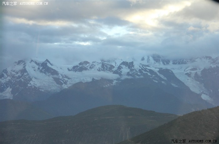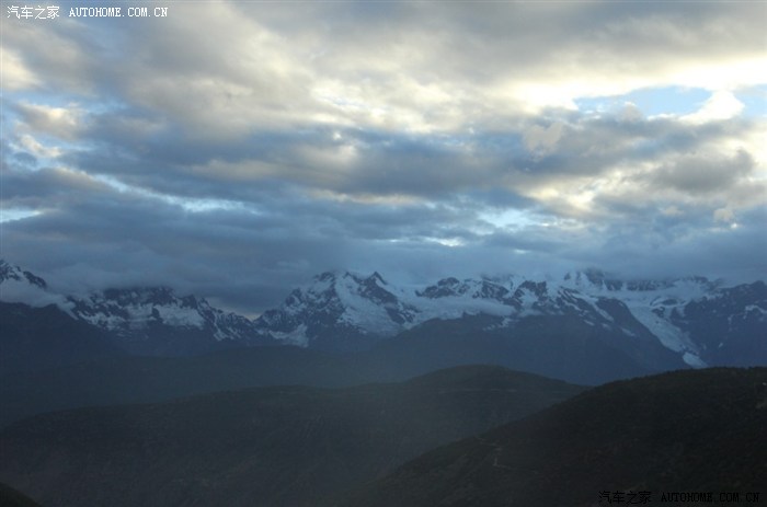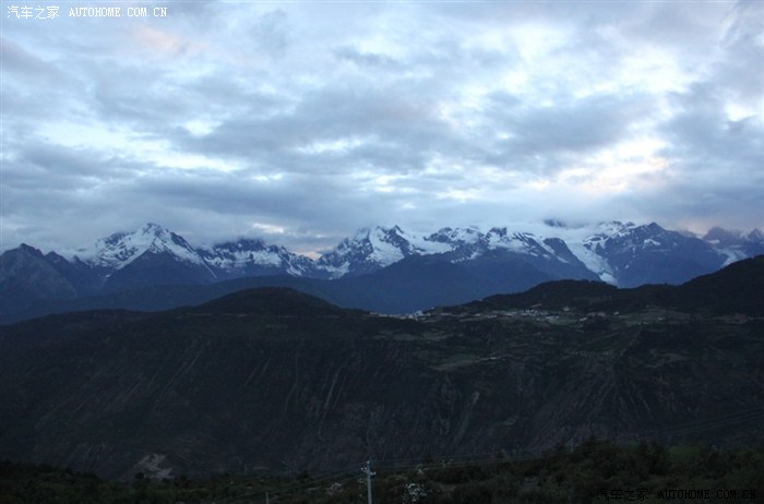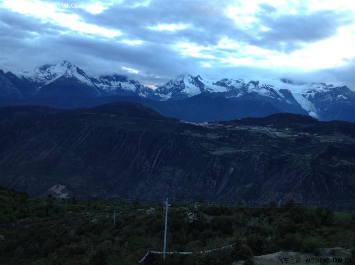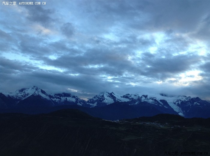 好吧,有一种幸运叫认命,突然翻过一座山,眼前的景色惊呆了,著名的梅里雪山,我来拉。这是晚上8点时刻,雪山依稀可见。多图,请欣赏梅里雪山的壮观。