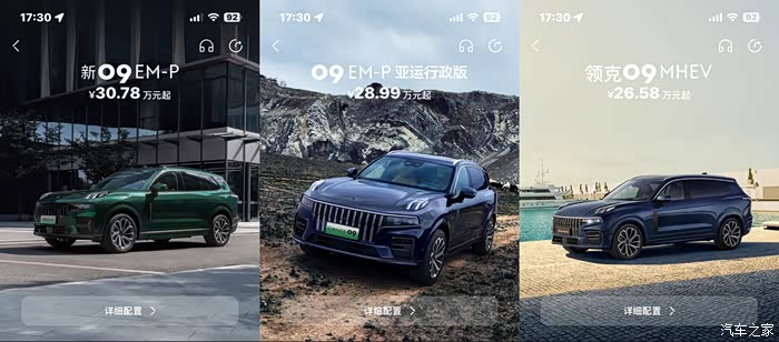 目前领克09有三个车型在售,分别是。领克新09emp,09mhev四驱全球版,以及09亚运行政(大5座) 动力总成是emp性能版也就是原本的phev。
