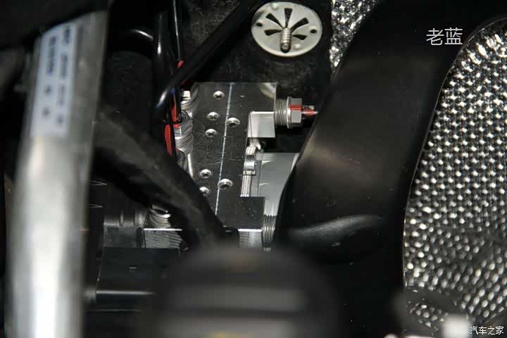 (上图)膨胀水壶,冷却液是红色的,大众一贯的传统颜色。大家在保养的时候,要注意检查一下刻度,如果低于MIN线要补充。右侧黄色的是油标尺把手,油标尺要定期检查一下,看看机油有没有缺少。发动机右侧铝合金支架,做的很精细。发动机和支架之间有橡胶衬套,起到减震隔音的作用。这款车型的隔音非常好,开起来很安静。