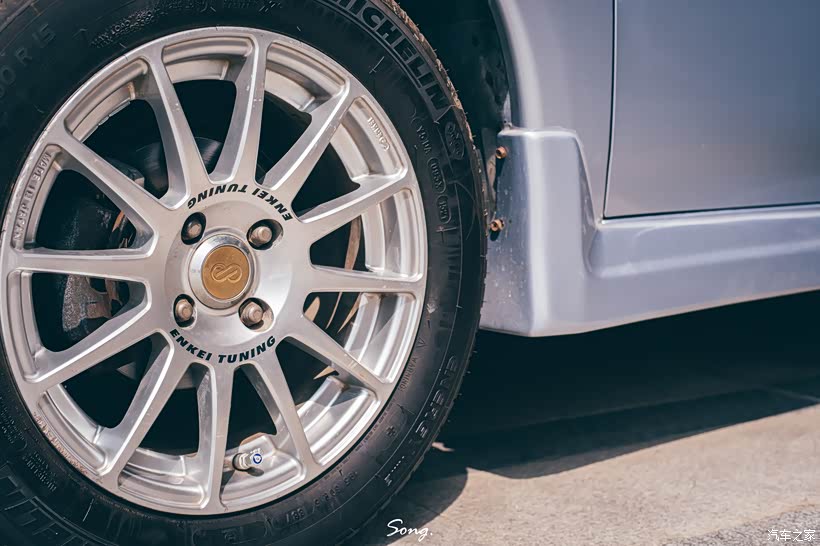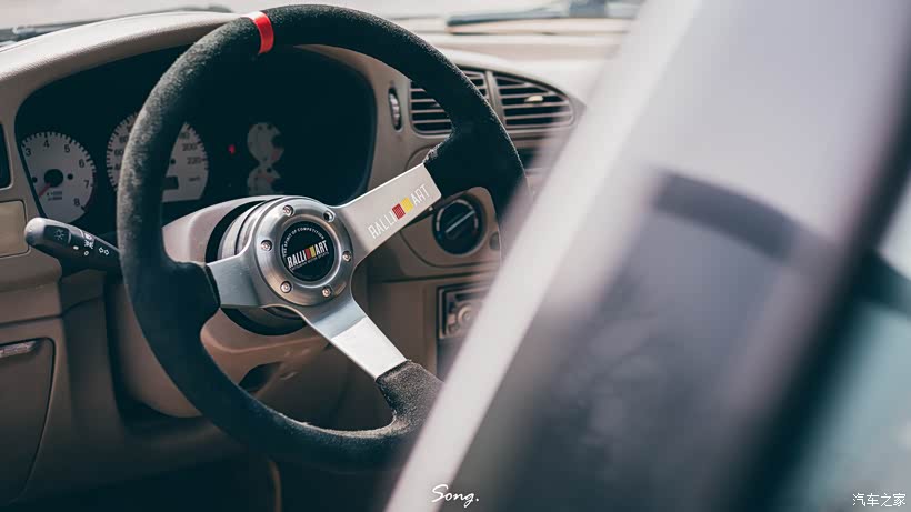 对于自己的第一辆爱车,小伙子在改装方面非常用心,在与改装店老板商量多次之后最终上了Topmix evo的包围、evo拆车全车灯、Enkei RC轮毂、HKS尾段等改件。外观方面因为外观漆面惨不忍睹,直接喷上鹦鹉的全车漆,整车看上去质感拉满。 如今整车除了前杠都非常“素”,小伙子表示自己喜欢这种“原厂”的风格。 他还在某宝淘了个拉力翻毛皮方向盘,这个方向盘体现了他很喜欢的三菱拉力风格,他说以后可能会往拉力的方向继续改装。虽然我们的对话不是很多,但是我已经感受到他对改装的热爱,瑞思拜。