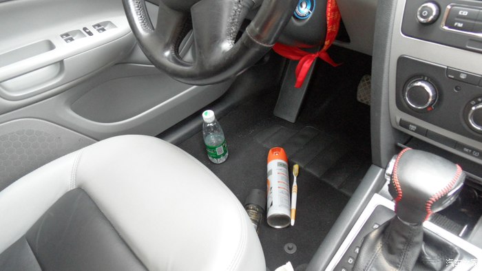 太热了 开着空调洗内饰,快三年了制冷效果还不错。