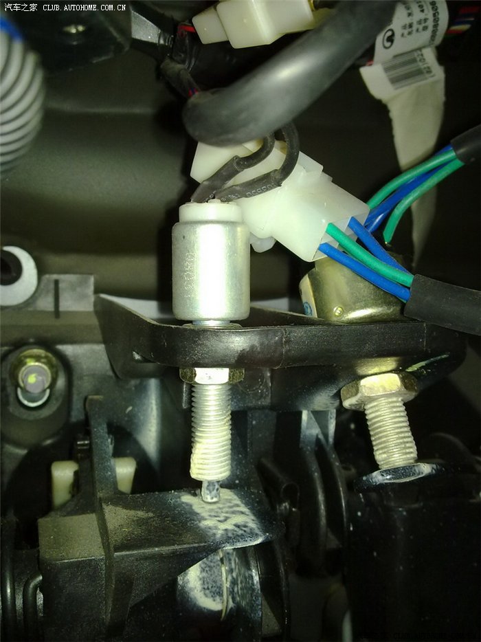 离合接触开关,比原来往下拧了约1CM.离合踩下-半时完全释放.开关导通信号传至行车电脑.