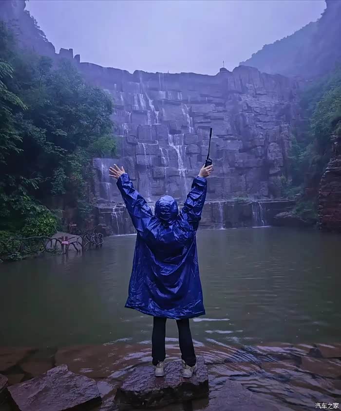 我们距离云台山的位置还是比较近的,只有90多km,开车一个多小时,因为是下雨天嘛,在高速上行驶的还是比较慢的,开车开了两个小时的时间,到我们到达目的地的时候,雨就开始减小了。但是还是会有一些细雨穿上衣服之后就开始了我们的旅程