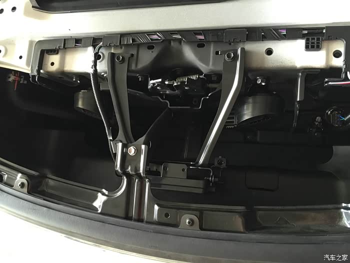 换雾灯要把前面这个塑料盖板打开,塑料卡子拿出来就打开了,很简单,拿出来后看见蜗牛喇叭和ACC雷达。话说这个蜗牛喇叭我真是很无语,在外面听是坝坝声,在车内听是滴滴声,搞得我一开始以为不是蜗牛喇叭还想换来着.......