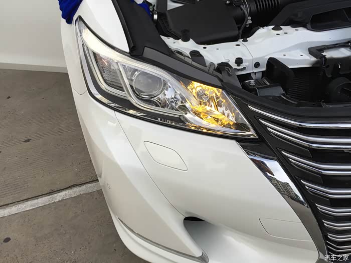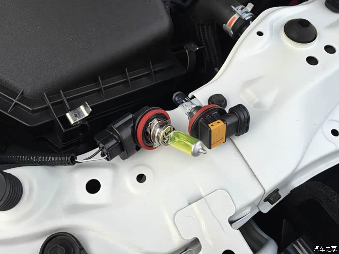 说回换雾灯,右边的雾灯直接伸手进去扭下来就好。左边的雾灯由于车窗清洗液的加注口挡着,要先把它拆开才能换雾灯。