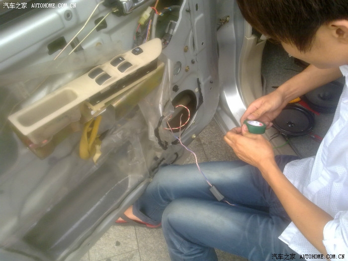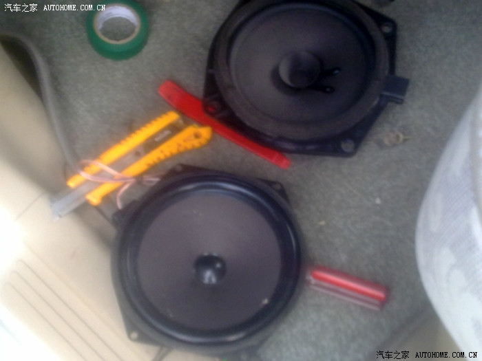 师傅说先装喇叭等一下装好CD机就可以马上试一下、、、还买了一对高音小喇叭随便装上去了