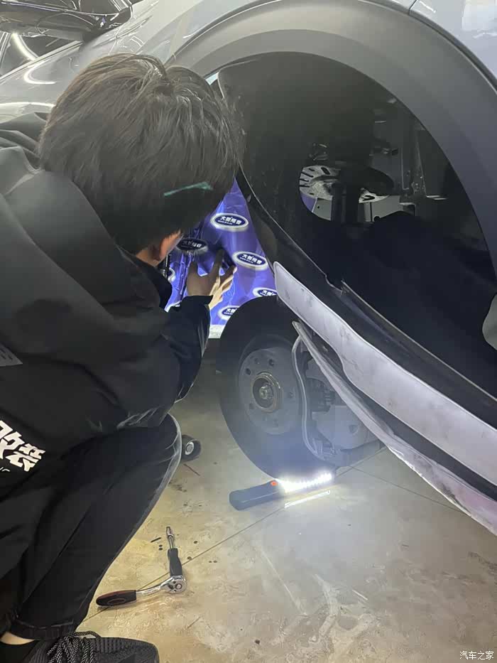 由于部分安装孔位靠近内侧,不拆车轮安装较为困难,便提前与销售做了沟通,将收到的挡泥板寄至4S店,在取车前,让店里的技师帮忙装好。