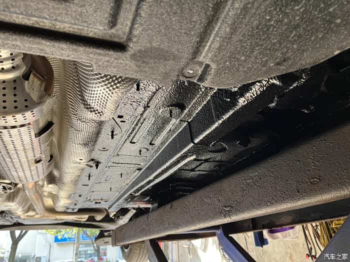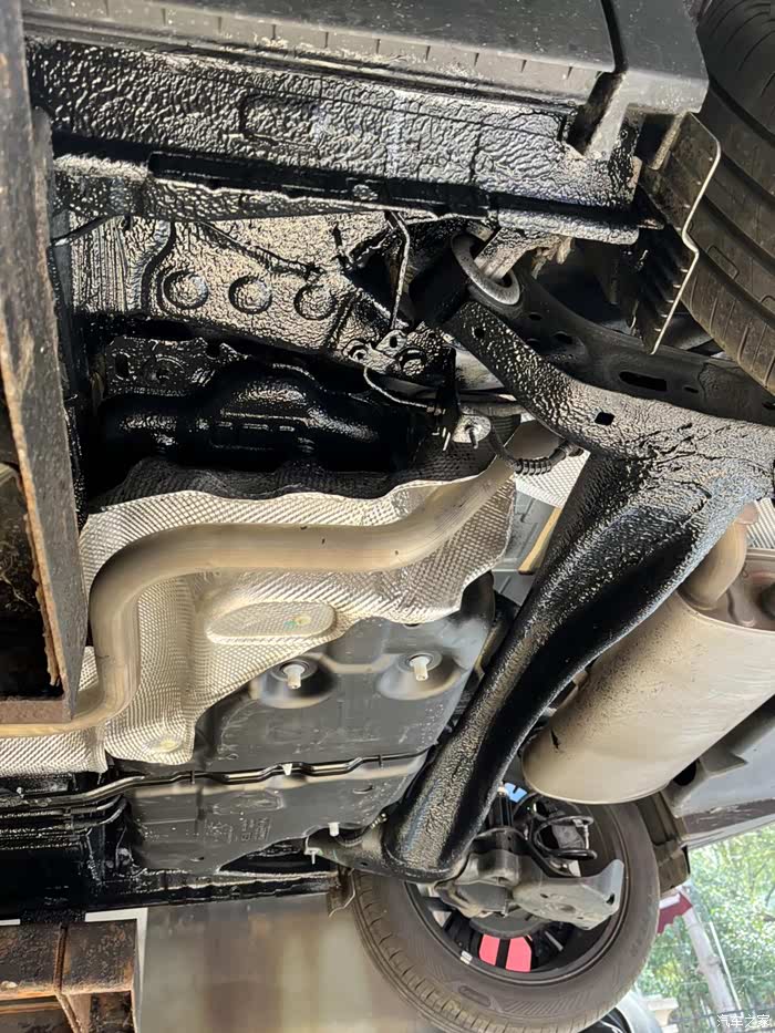 除了需要散热的排气管和可变扭力梁,C5X的底盘均被大片护板遮蔽,风阻较小。但覆盖区域内金属表面均树脂涂层,板面平整。想着是不是给表面光洁的金属底板表面增加颗粒状的涂层,多出的介质和凹凸不平的表面,也可以有一定的隔音、吸音效果。看到论坛里已有车友为了降噪,做了底盘装甲,便种了草。