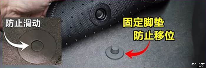 装车后用了几日,主驾位的脚垫会有些移动,便加了适合的锁扣固定。又剪去丝圈脚垫左侧的分岔的部分,露出原车闪亮的金属饰面踏板。