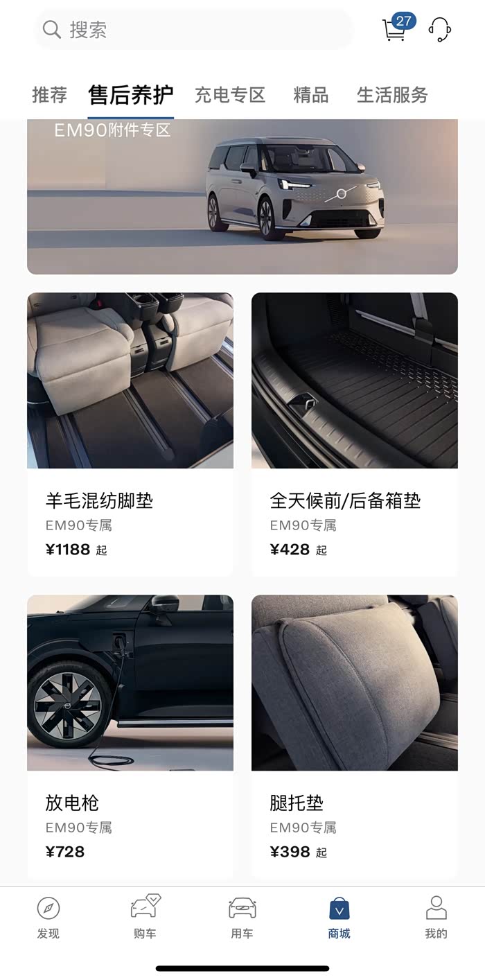 最后分享几个沃尔沃汽车app里面的EM90专属车载好物,nappa腿托垫,整车羊毛脚垫,tpe后备箱垫这几个我强烈推荐。真的是一点异味都没有,不会污染车内空气(鱼龙混杂的车内装饰品是车内空气污染重灾区),原厂设计颜值高。