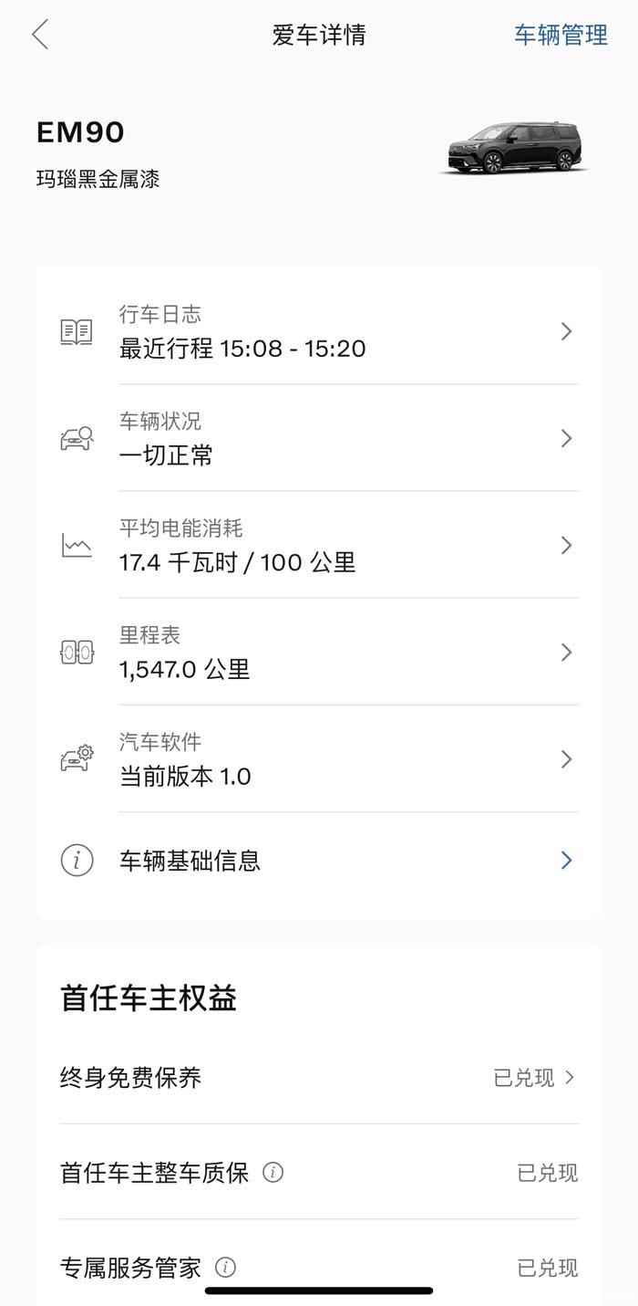 8.厂家权益有赠送终身免费一键加电(每年12次权益),这个权益我仔细研究了一下非常不错。可以一键下单安排人员上门来送电或者代客加电。一般用车情境下都是代客加电,就是有专业师傅上门来取车,去商用充电站充电到90%以上送回,所有服务费跟充电费用都是免费的。这在我们使用场景中是很方便的,例如开长途去某地参加会谈或者就餐等,就可以提前下单师傅帮我们去完成充电并送回,这样就不需要我们亲自去充电站了,缓解用电焦虑。