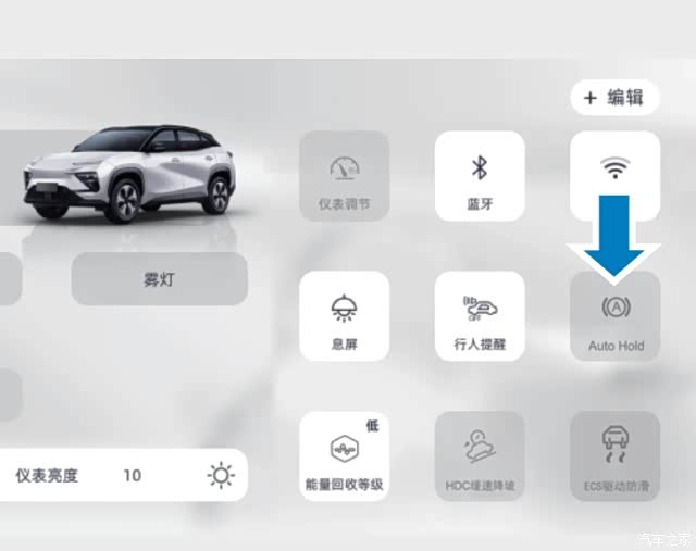 2、点击屏幕右侧的圈A图标选项,开启自动驻车功能。