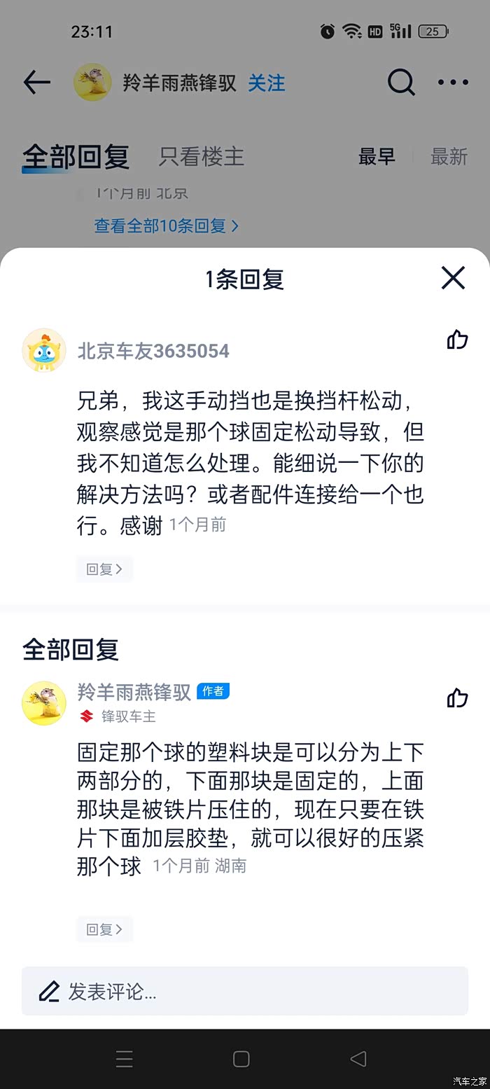 一五年的锋驭手动精英,最近感觉换挡机构松旷,看了论坛里继续迷途、MAO在狂奔等车友的帖子,学到了很多,明白了是该换新的换挡总成的时候了。