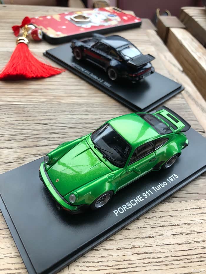 曾经在多年的收藏经历中目睹过无数波子的经典车型,却纷纷与之擦身而过。心里一直默念着“千万别入坑~”,本以为这样就可以相安无事,却不成想终究还要惹尘埃。正如本帖里这款颜色骚气,造型经典的小绿蛙,其实AUTOart在很早前就出过1:18,我甚至都不记得曾在模型店看到过它的身影,也可能是被骚气亮眼的它吸睛几秒后就强迫自己迅速转移注意力吧,总之是错过了。如今Aa那款18比例的绿蛙已经海景到离谱,看完价格也只能是捂肾兴叹。前阵子在模友交流群里看到有人发图才知道原来京商也有出过这款绿蛙,虽然是1:43的,但价格和做工都堪称良心,前后盖都可以打开。遗憾的是这款43比例的也不好找了,那位兄台告诉我他也是从模友手里淘来的……