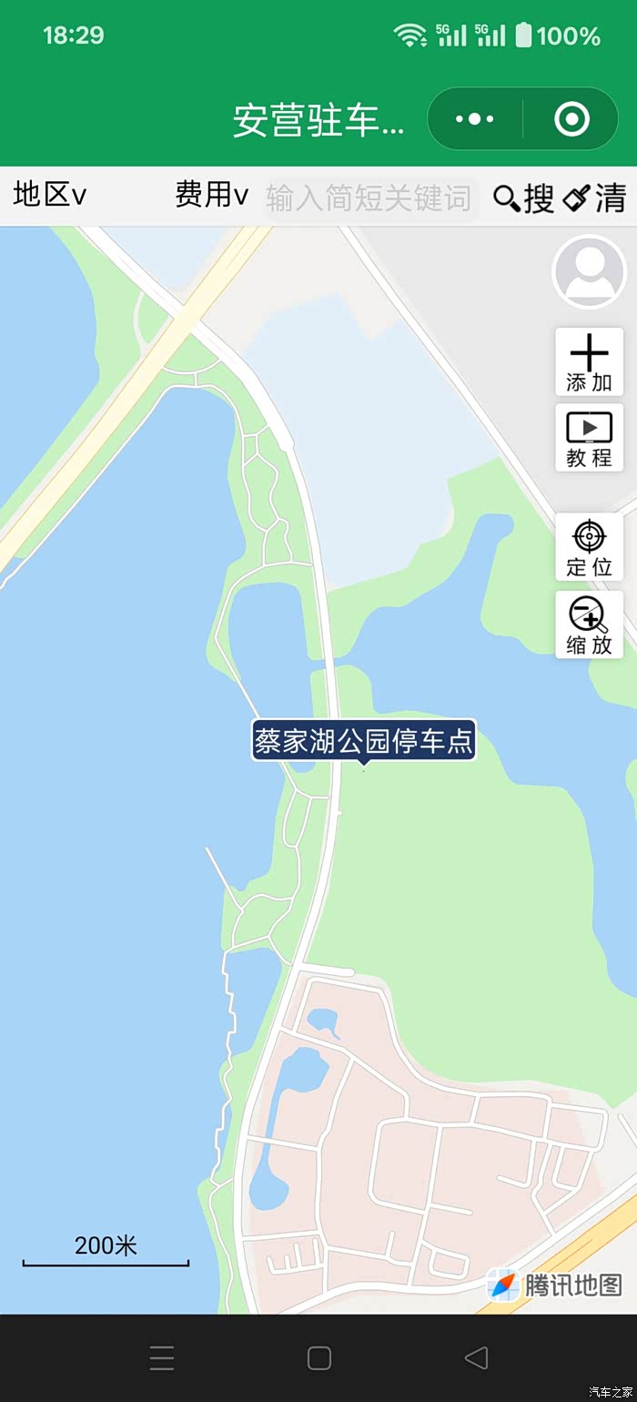 出发前就已经通过小程序找好了露营点,选择露营点名叫蔡家湖公园停车点。位于湖景公园内,景色宜人。