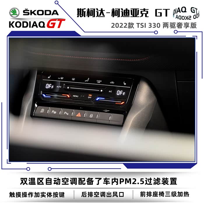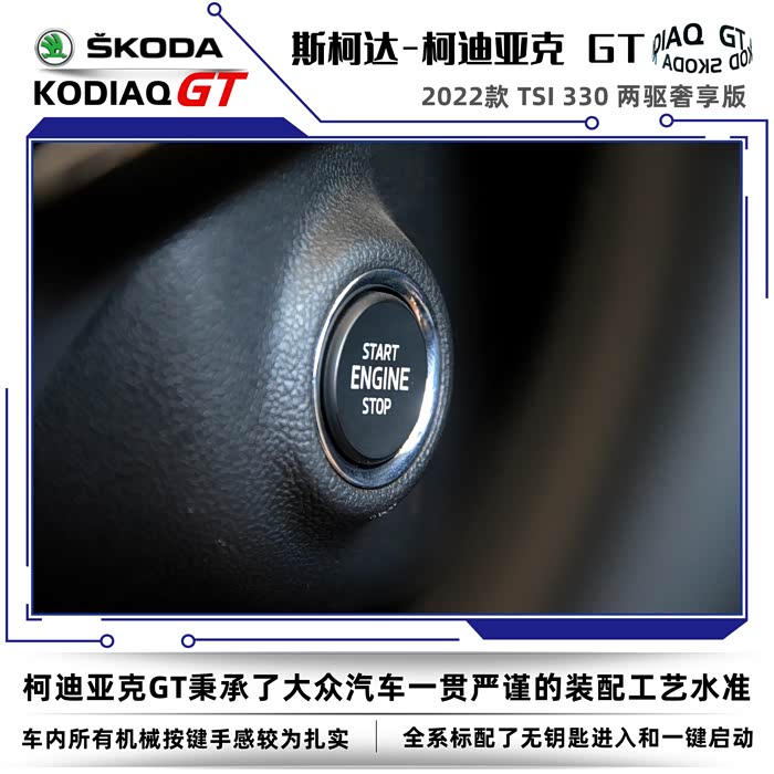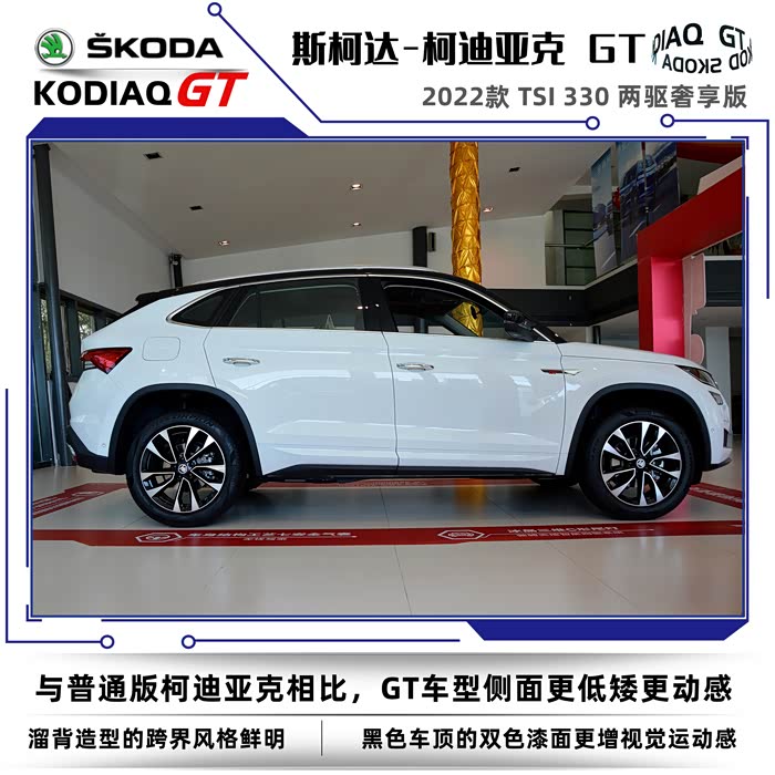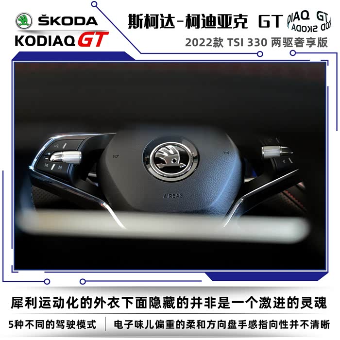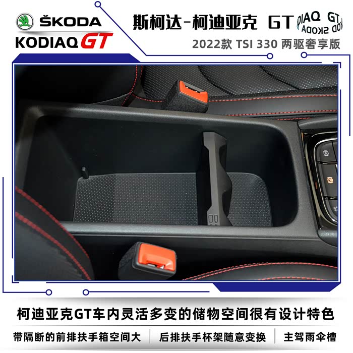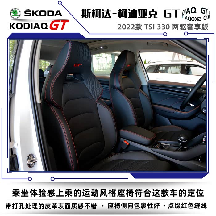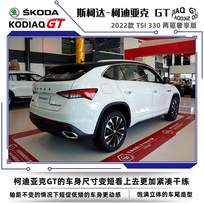 2022款斯柯达柯迪亚克同样分为普通版和GT车型,我这次到店看车的车型是柯迪亚克GT2022款 TSI330 两驱奢享版。没有不同配置的细致划分,选择起来也很简单,2022款的GT车型只有两款,两驱奢享版和四驱旗舰版。GT英文全称是Grand Tourer,可以称之为豪华旅行车的意思,再后来只要是冠以GT名号的车型基本上都是性能优异、发动机马力强劲的高性能跑车。在车名尾缀上加GT需要的不仅是勇气,还得有强悍的实力,不然的话名不副实反而会落个哗众取宠之嫌。