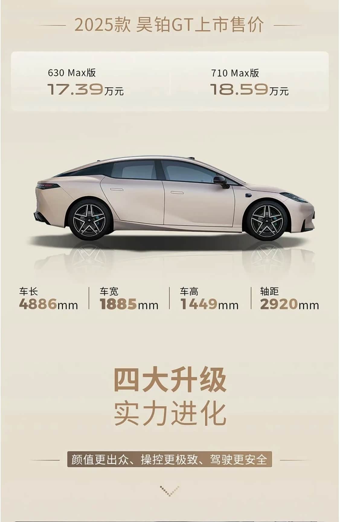 2025款昊铂GT焕新上市啦,四大升级,实力进化!悬挂系统升级,全新底盘升级VGR和FSD智能技术,复杂道路提升车辆操控;升级星动轮毂,外观更具张力;新增能源管家,出行补能更方便。