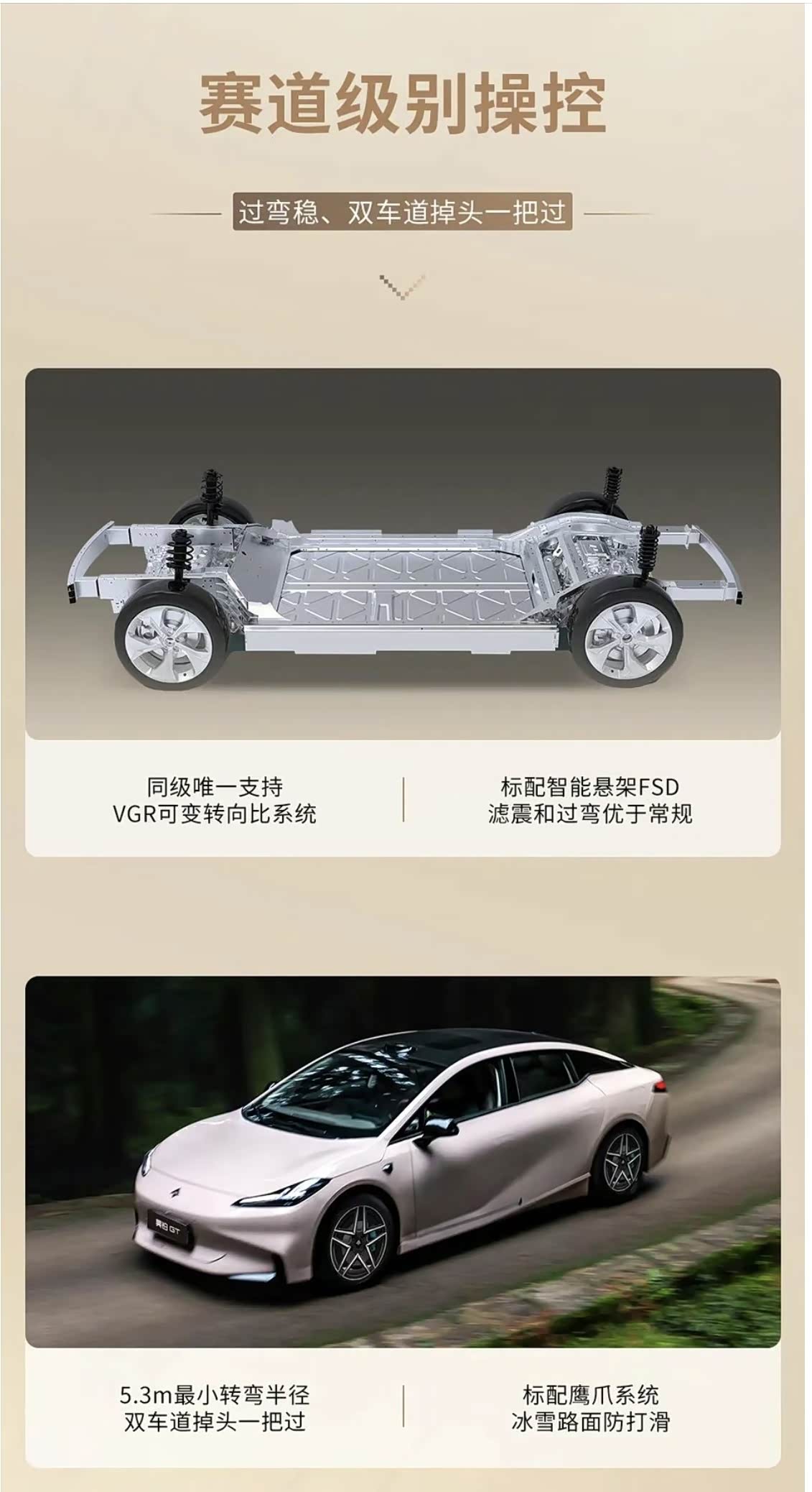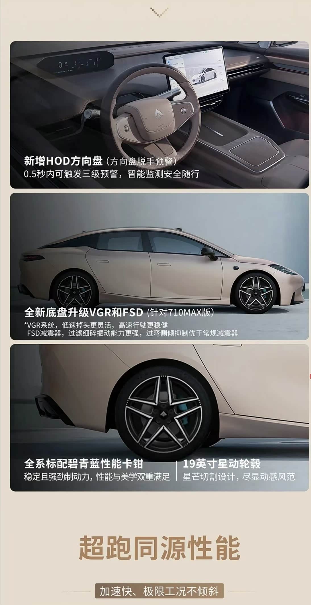 2025款广汽昊铂GT新增了HOD方向盘(方向盘脱手预警),0.5秒内可触发三级预警,智能监测安全随行,全新的地盘升级VGR,低速掉头更加灵活,高速行驶更稳健。FSD减振器,过滤细碎震动能力更强,过弯侧倾抑制优于常规减震器,这些改动可谓是非常有针对性,针对之前的痛点做出了改进。另外全系还标配了碧青蓝性能卡钳和19寸星动轮毂,使的昊铂GT更显动感风范。