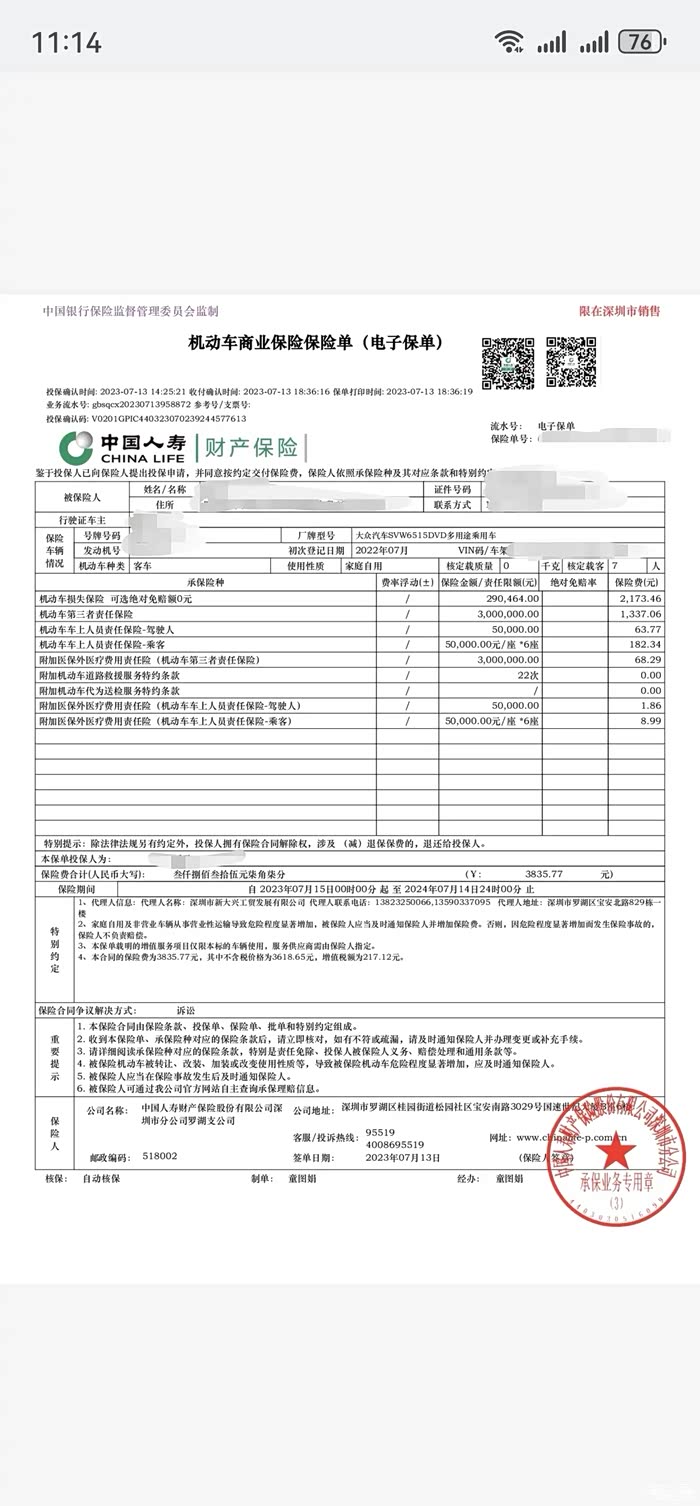 这里分享个保险省钱技巧:一是保持无出险记录,我三年没出过一次险,光商业险就省了近2300元;二是三者险建议选300万保额,从保单能看到,300万三者险保费比200万只多几十元,保障却翻倍;三是车损险保额会随车辆折旧自动下调,不用额外申请,保费也会跟着降。