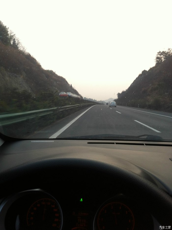 在去程的路上(滆湖西特大桥),就碰到了一起追尾车祸,由于跟车太近,加之刚开始踩刹车的力度不够,后来变成紧急刹车,如果我右边的大巴不让道给我前面的红车,前面的红车不紧急変道直接追尾前车,那我也遭殃了,这起事故将演变成一起多车连续追尾事故。我停下来后离前车仅有1米开外的样子,刚停下来又听到后面砰的一声,抬头看了下后视镜,后面又有一辆追上了,说真的我运气真好,两起车祸把我夹在中间,我居然没事,当时我有一种心跳加速的感觉,本想下车看看的,可我不敢,担心后面会再来一辆刹不住的大货......看了下右边没车,立即松离合走人,从那以后的几千公里中,每次急刹必打双闪,可以保护自己不被后车追尾!