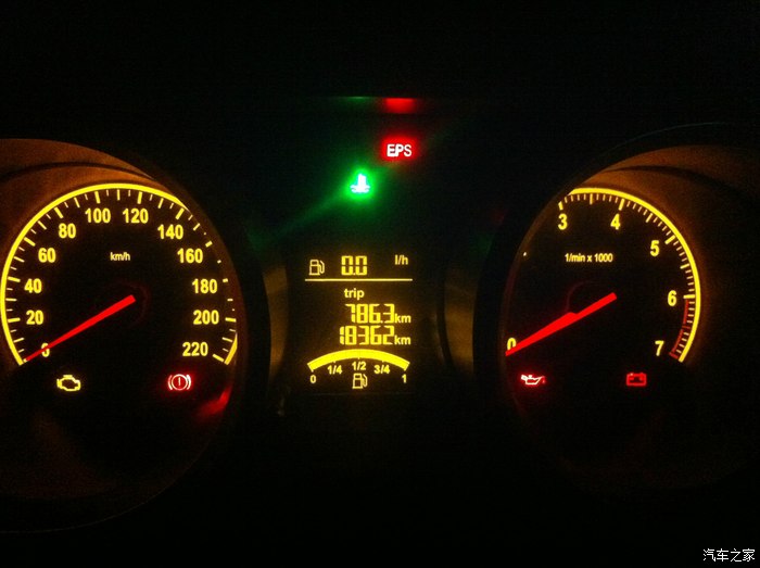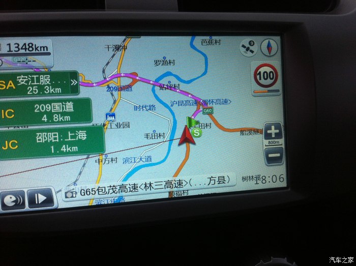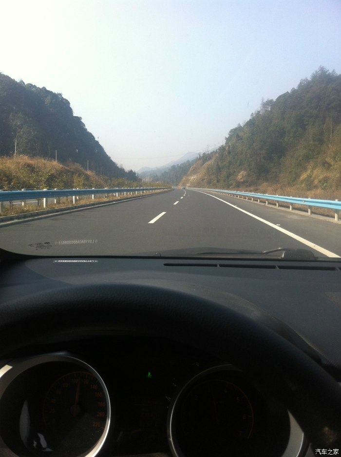 同样是在去程的路上,想看看我们的小二一箱油能在纯高速上跑多少公里,所以还有1/4格(就是最后那三个小格)的时候我没有加油,因为导航上显示离下一个服务区还有69公里,我想应该没有问题,可是没想到,到达下一个服务区后,被油站告知没油了!再看了一下,下一服务区还有58公里,应该勉强可以到达吧?我还是没怎么急,结果还有20多公里的时候,油箱报警了,显示还有一小格,灯亮着,我开始担心了,应该不会熄火在路上吧?想起以前在论坛上看到大家说,80码左右是最省油的,我不敢再往死里踩了,限速110的高速我就100码的开,不敢急加速,更舍不得踩刹车,上坡都不敢往深处踩,靠惯性通过,最后顺利到达服务区了,从这以后的路上,只要油量掉到一半以下,我就开始准备加油了,见服务区就干脆加满。