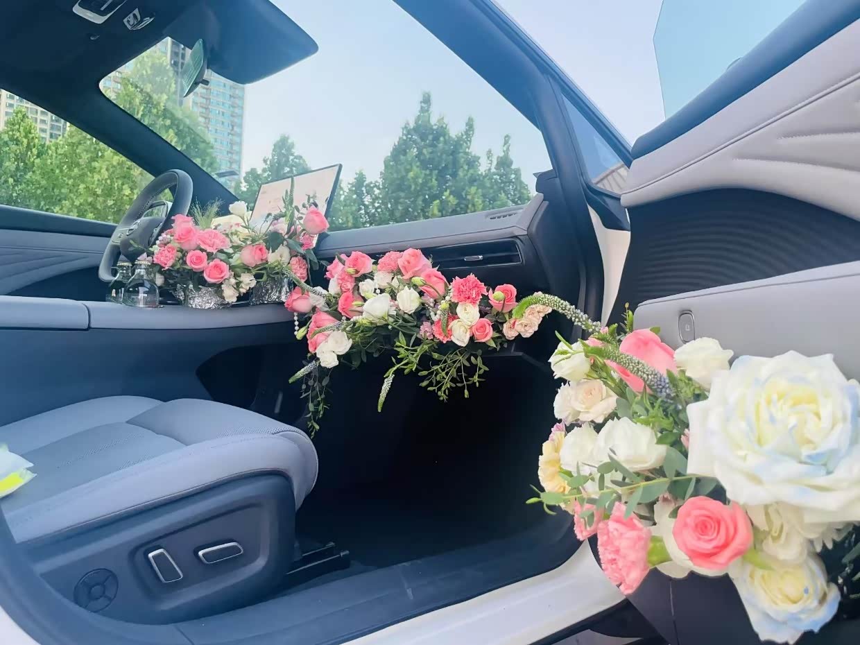 6、最后4S店还给我诸行了交车仪式,据店里说的还是店里的金总专门购买的鲜花,铺满车里面,也不知道真假,最后也是软磨硬泡让店里赠送了全车脚垫、全车贴膜(不包含前挡),感觉真实太难了,使用感觉贴了和没贴没多大差别,还是不太隔热。