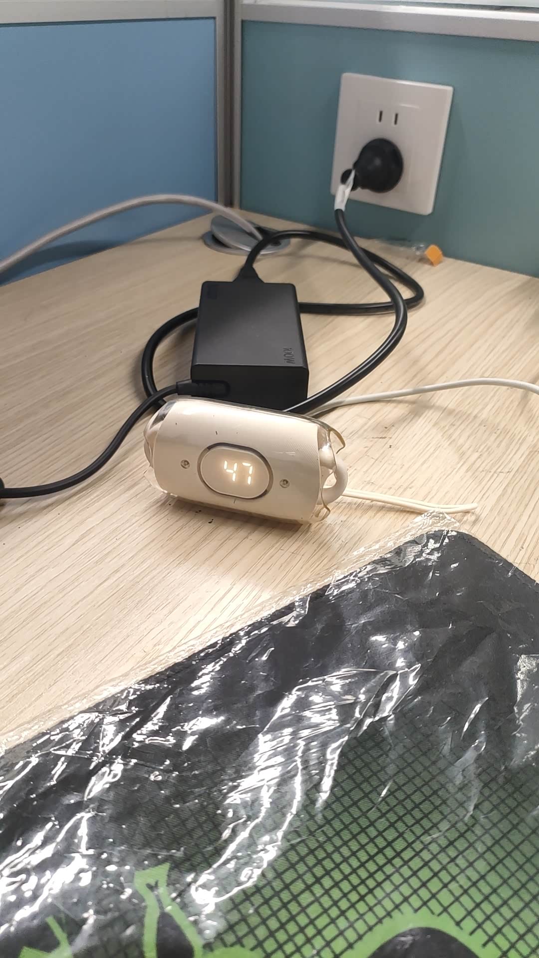 马上就要下班了,我这边刚和公司开完线上会议,我一看到耳机电量低于40了,于是我就给它充电。等充完电我再回去。