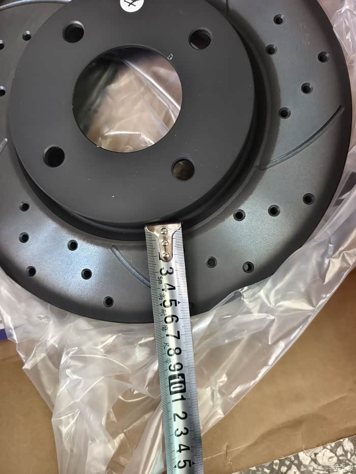 定做了一套热处理工艺的刹车盘回来,货到了后第一时间量尺寸,因为高底配的盘子尺寸有区别,高配前后碟刹盘子接触面积是60,普通的前碟后鼓的刹车盘接触面积是50