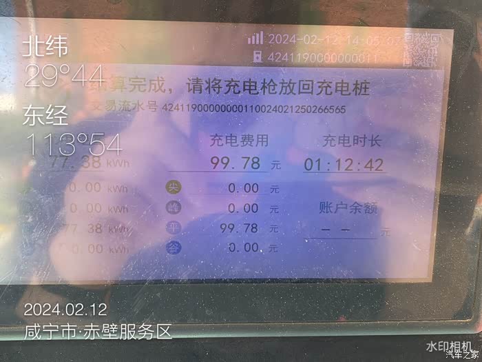 赤壁服务区冲77.3度电 99.8元。 C11满电是78度电 我在赤壁充了77.3度电 估计要是再多一点路程,要叫拖车了