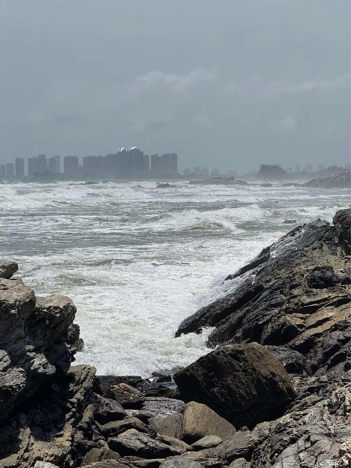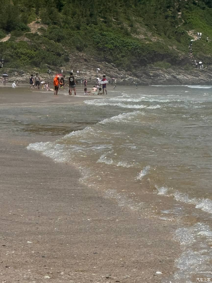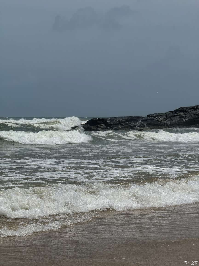 车刚停下,俩小孩就迫不及待要往沙滩上跑了,我看浪头还挺大,赶紧跟着他们往海边走。