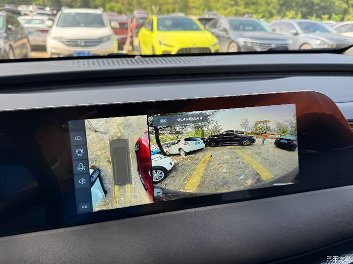这种没画线的野生停车位,还是得靠全景影像,见缝插针地把车停好了。