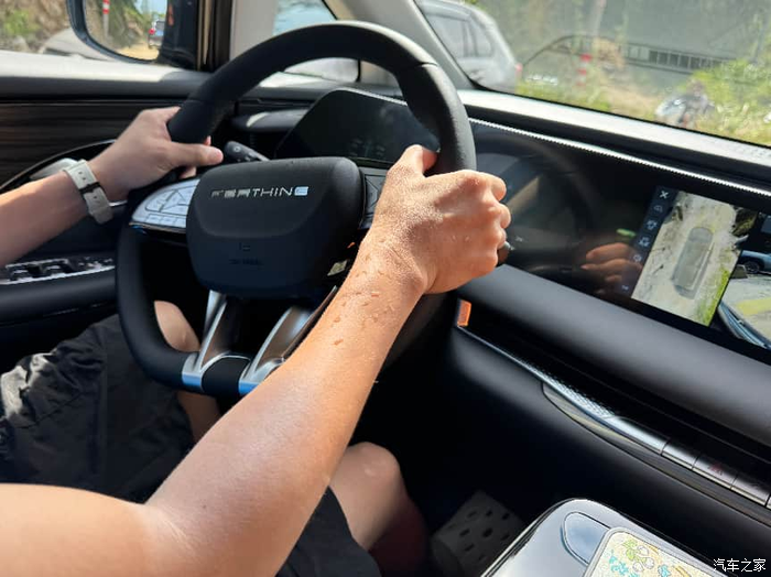 越开越偏,最后进山上小路了,这种路况果断手动接管,也是到考验驾驶技术的时候了,V9的方向盘力度比较适中,铺装路面一个手轻松开,这种烂路肯定要双手扶着,转向挺准,操控难度和开SUV没啥区别,甚至感觉更稳。
