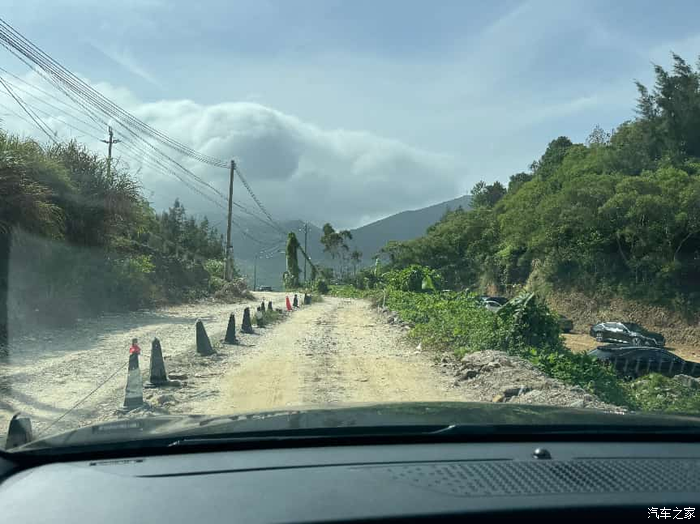 路边全是碎沙石和坑洼,还好V9的后悬是五连杆独立悬架,颠簸感被过滤得很小了,转急弯的时候侧倾也很小,家人在车上坐着稳稳当当。就这路况,但凡是来了板悬的车,车上肯定都是东倒西歪了,我是真劝还没买车的兄弟,选车多看看底盘。