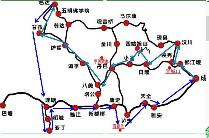 下面把这次自驾的行程简介一下:我们走甘南进川,历时24天,行程8020公里,主要途径:黄龙--成都--都江堰--青城山--映秀汶川----日隆(四姑娘山)--丹巴--甲居藏寨--梭坡碉楼--八美--道孚--炉霍--色达--甘孜--大盖--新龙--理塘--稻城亚丁--康定--海螺沟--泸定--成都