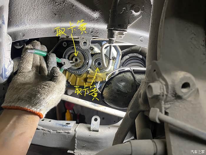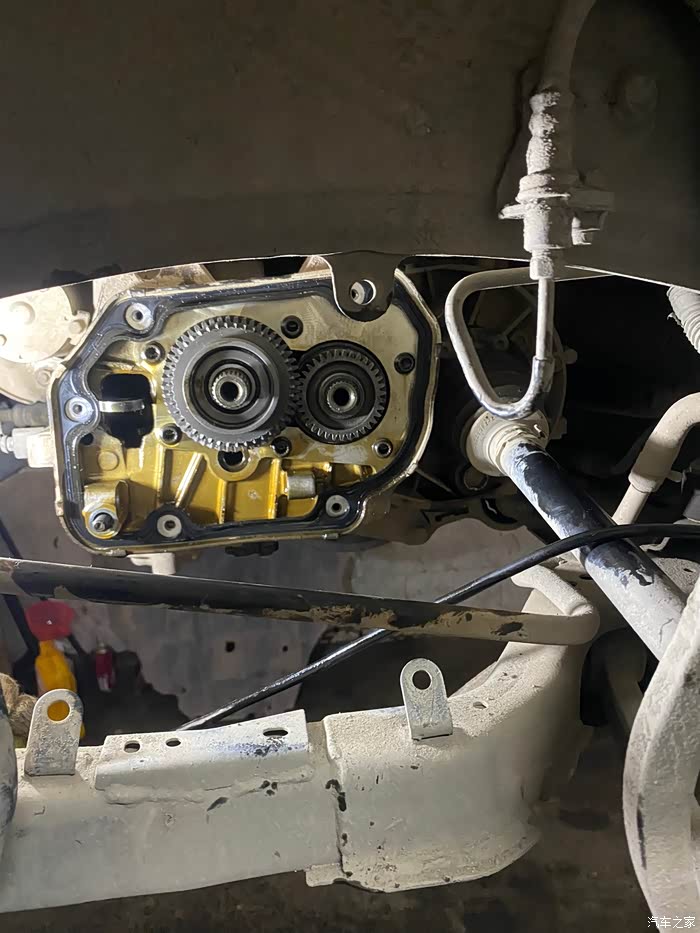 需要把左轮拆了,把车升起来放完齿轮油(变速箱油)好做事,我的齿轮油刚换没多久,拆有溢出来的油,等下补加一点上去就行。