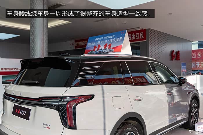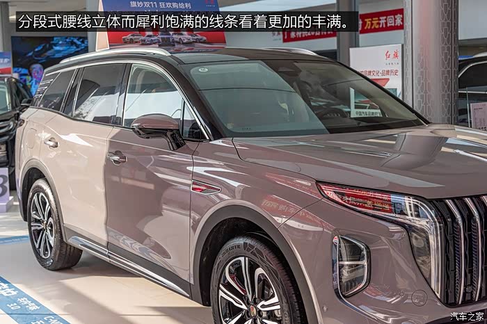 全新一代红旗HS7的外形更加的年轻时尚了,这么大的车身造型上看着毫无笨拙感这一点设计的非常成功。