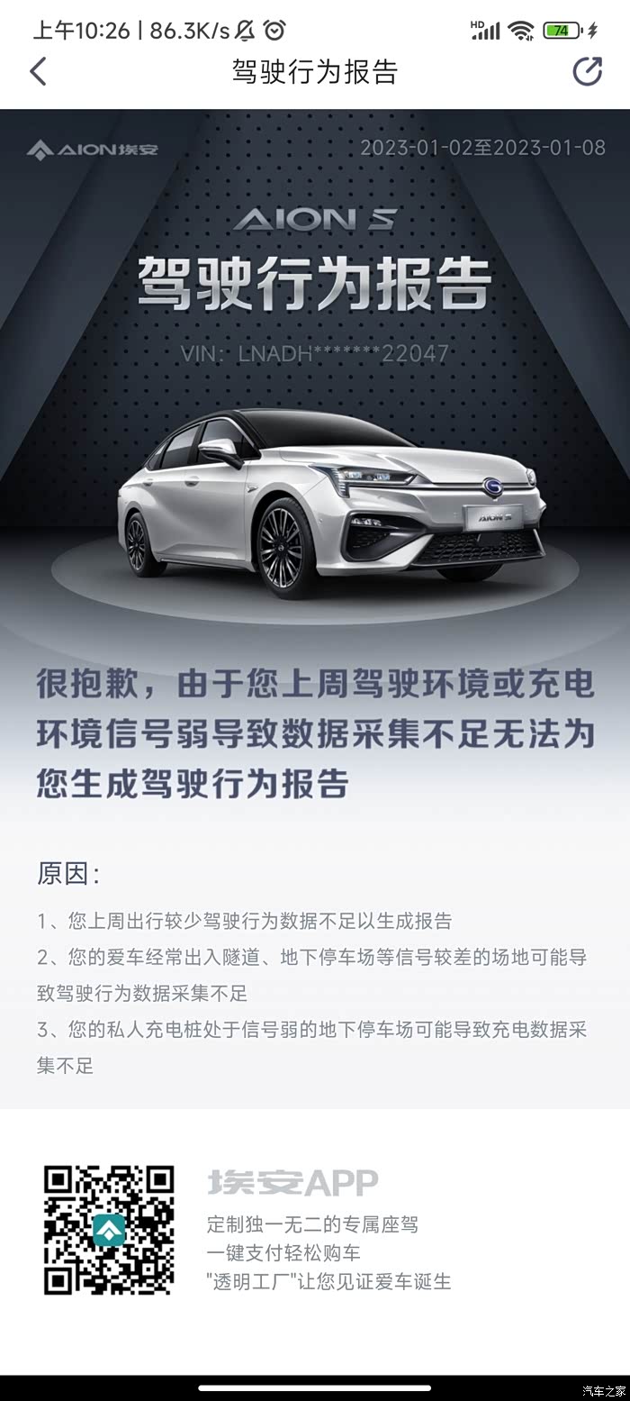 我是2022年11月1日提的车,至今已经与埃安YPLUS相伴74天了。