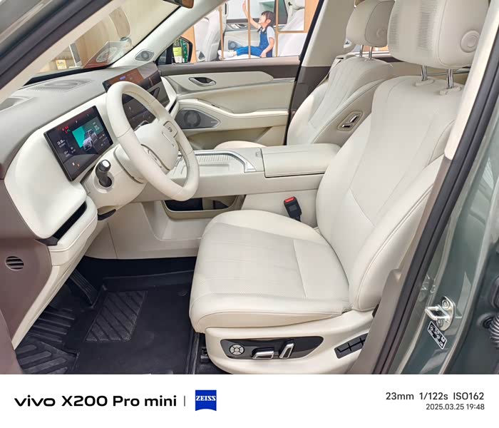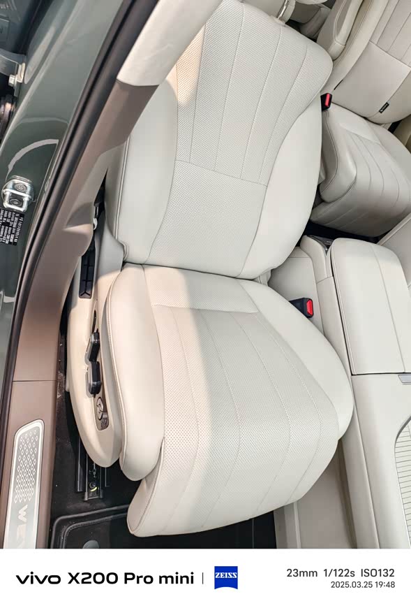 六座布局的每一排都足够宽敞,我身高178cm坐进第三排膝盖仍有余量。NAPPA真皮座椅填充柔软,主驾带10点按摩和腿托调节,副驾“女王模式”一键放倒后几乎能躺平。二排独立座椅带加热通风,可惜第三排靠背角度调节有限,长时间乘坐稍显僵硬。后备厢在三排启用时仍能塞下两个登机箱,全家出行毫无压力。