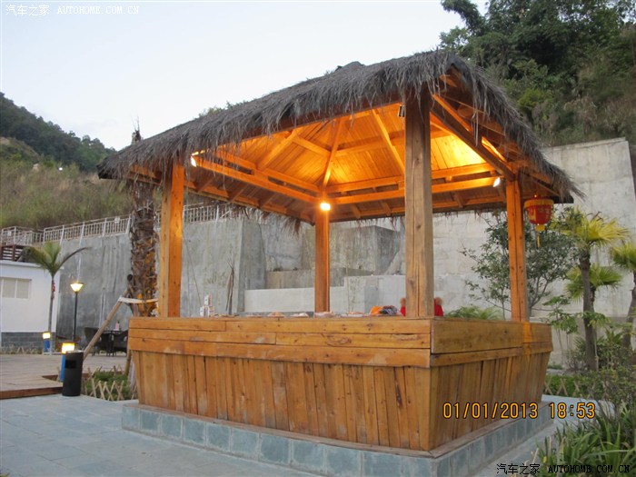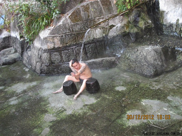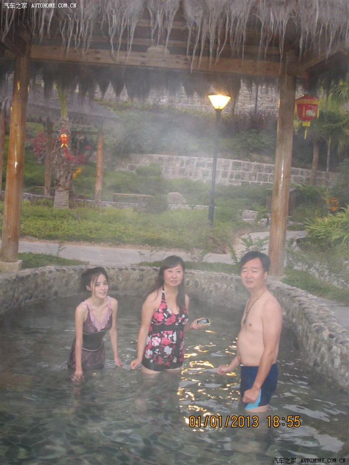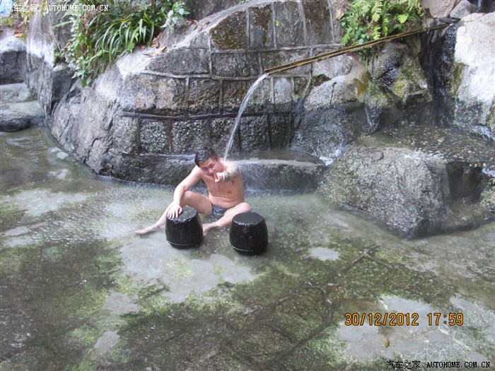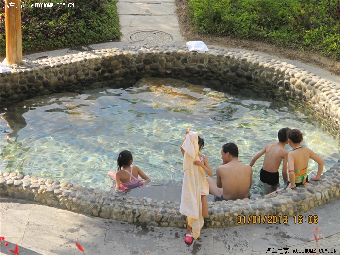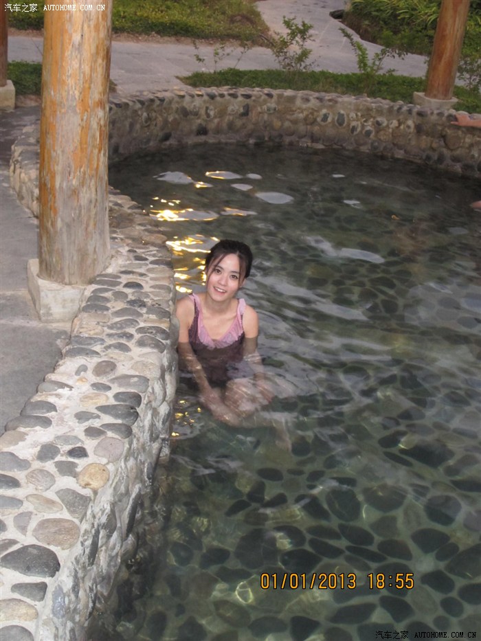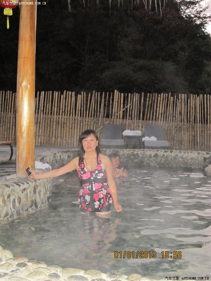 我哪还等的了水放满,直接进去了,当时6点左右,太阳下山,山上温度2度左右,地热泉水39度,请大家自行想象当时我有多爽吧~哈哈