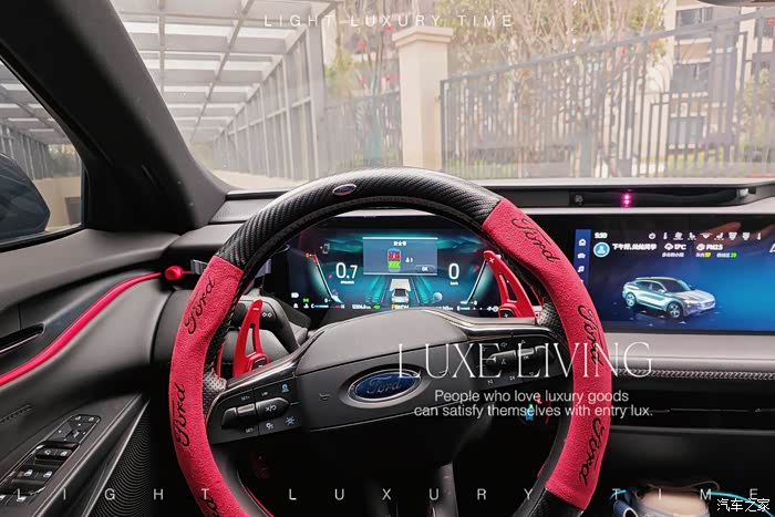 evos的方向盘设计有点赛车风格,我个人自己安装了红色的装饰品,感觉看上去更加运动富有活力。