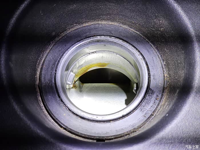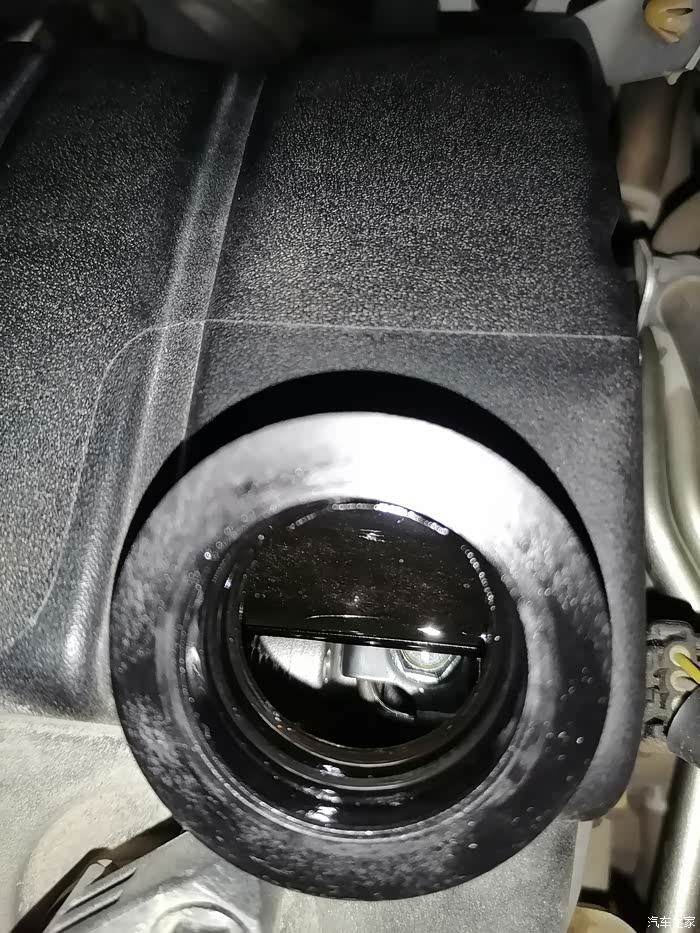 那你得把火花塞卸下来,用内窥镜看缸内,迈锐宝机油盖子打开,里面是这个颜色的,没问题。