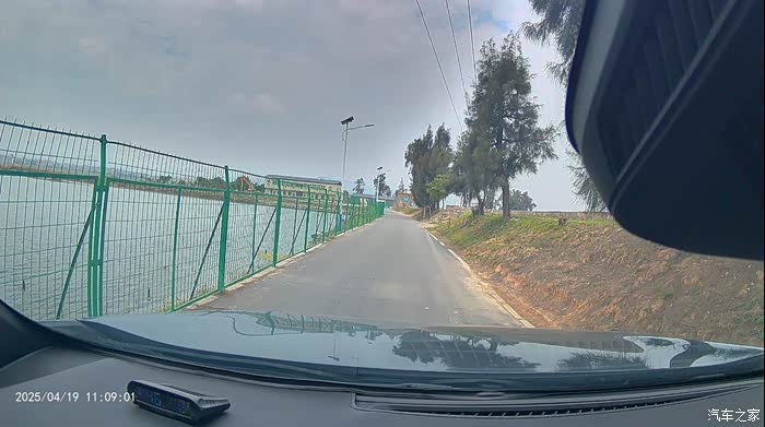 我这大七座的车,也是有宽度,打开360全景,压了点土路开过去。