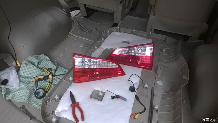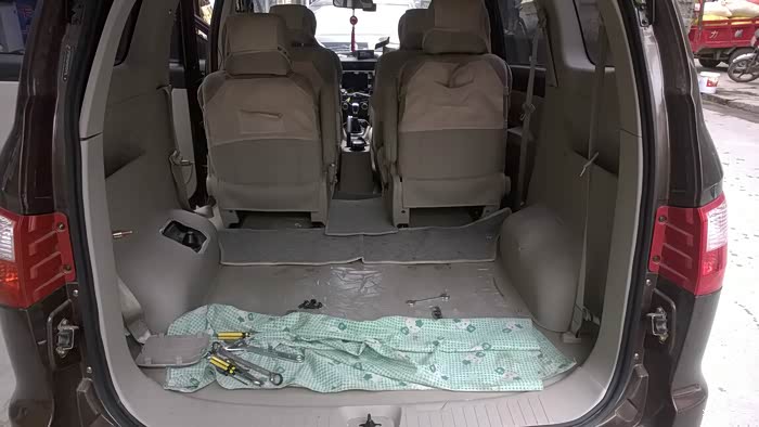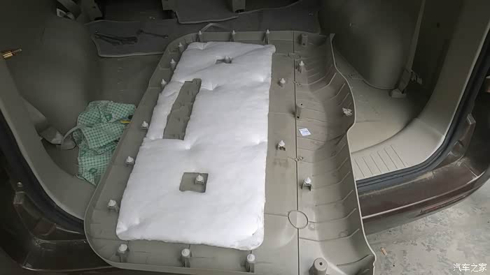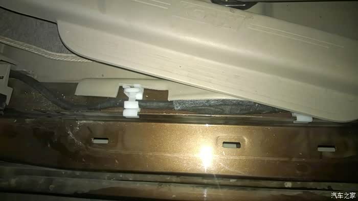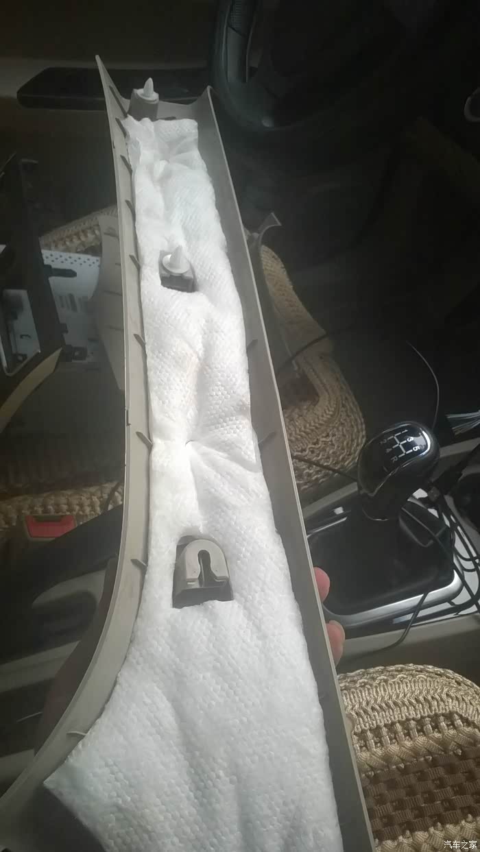 拆掉后面的门把手,撬掉胶卡子,有螺丝就拆,我把安全带都拆了。安全带螺丝有点紧哦,要用点力哦,安是也要上紧,这个不能马虎。