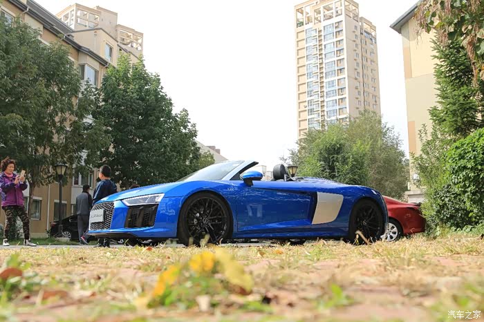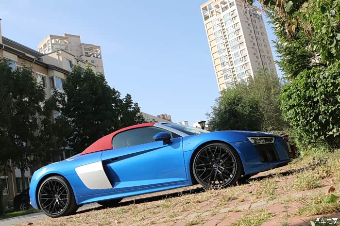 十月正直初秋的季节,正式北方最好的时候,即将进入东北的供暖期,我心中憧憬的蓝天会渐渐被雾霾所笼罩,17年的国庆中秋双假本来是想走出去,溜达溜达,但是种种原因没有出去,那就找上好友去给这台R8 Spyder拍拍美照。这台R8 Spyder发动机虽然不及Performance那样极致暴力,但是软顶敞篷超跑有着它自己独特的魅力,在街上游走是那么的吸引目光,540P马力+10缸,这两个完美的数字能激起男人肾上腺素,当然作为辣妈的我也是同样的吸引。