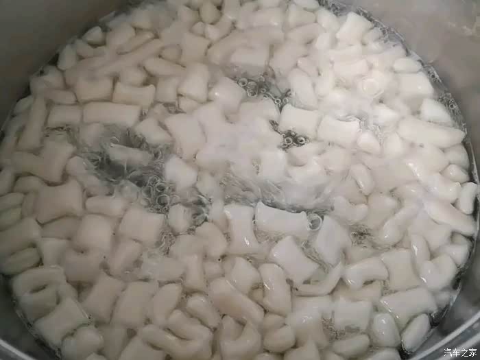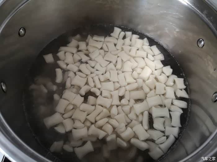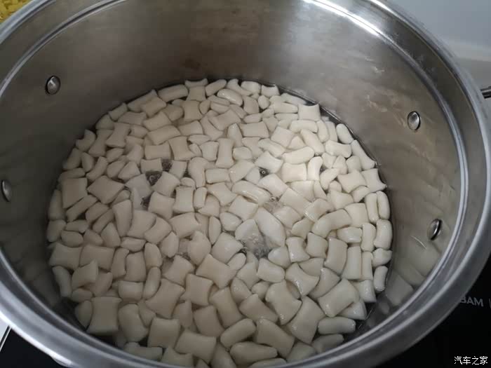 面丁全部入锅后,大火煮开,面丁会全部浮起。